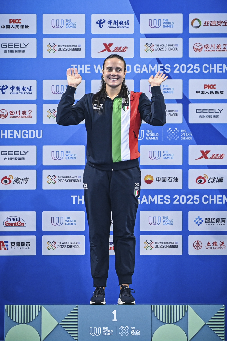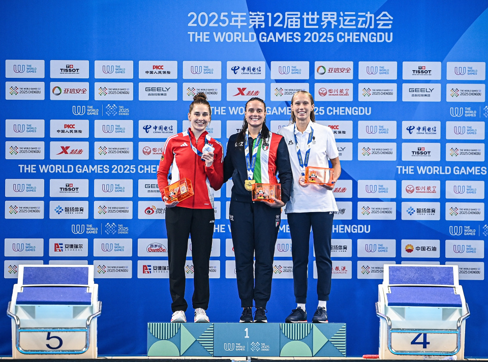 当日,成都世运会女子200米超级救生决赛在成都体育学院三岔湖校区游泳馆举行。