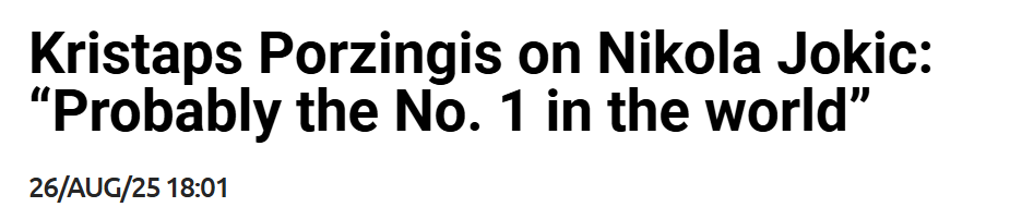 波尔津吉斯:约基奇很可能是当今世界第一 申京不断进步就是头野兽